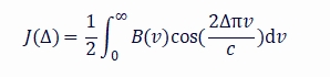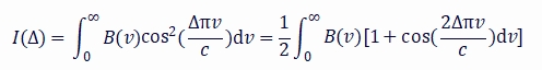 若入射光是波長(zhǎng)為λi和亮度為Iλi的多色入射源,則其干涉圖強(qiáng)度為: