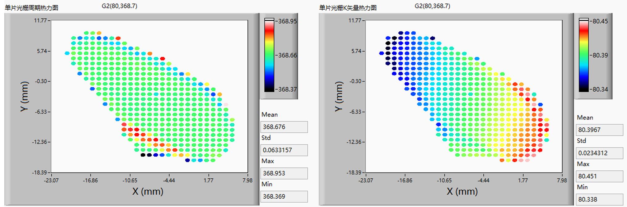 獨家算法實時解算光柵面內(nèi)K 矢量角度,K 矢量精度可達0.005°,全面監(jiān)測光柵器件面內(nèi)K矢量異常。某AR 光波導(dǎo)客戶借此將產(chǎn)品調(diào)試周期從48 小時縮短至6 小時。