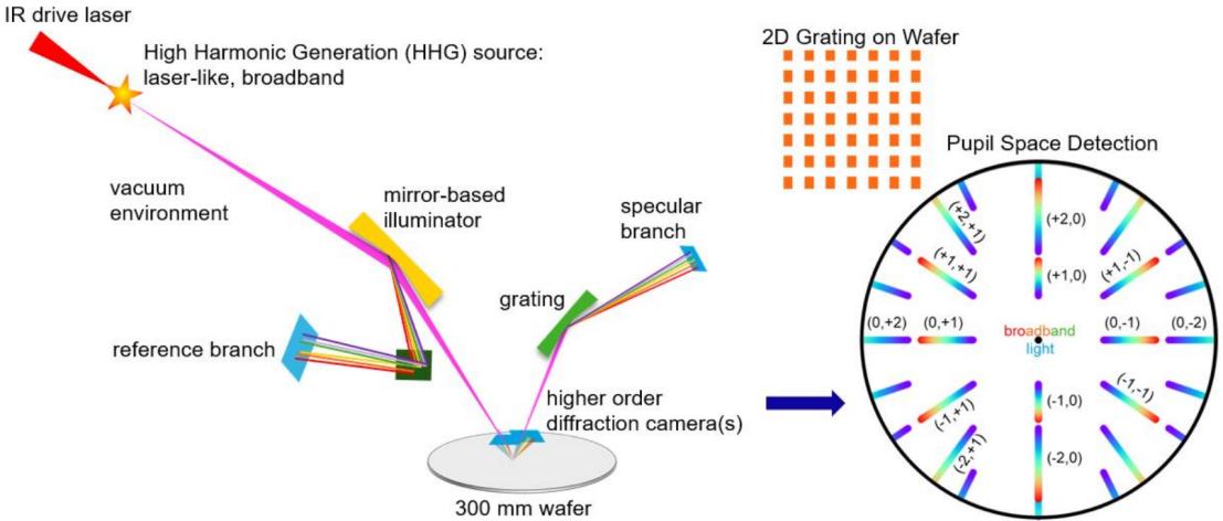 圖2、用于晶圓檢測(cè)的極紫外/軟X射線(xiàn)散射測(cè)量工具概念和遠(yuǎn)場(chǎng)檢測(cè)示意圖。