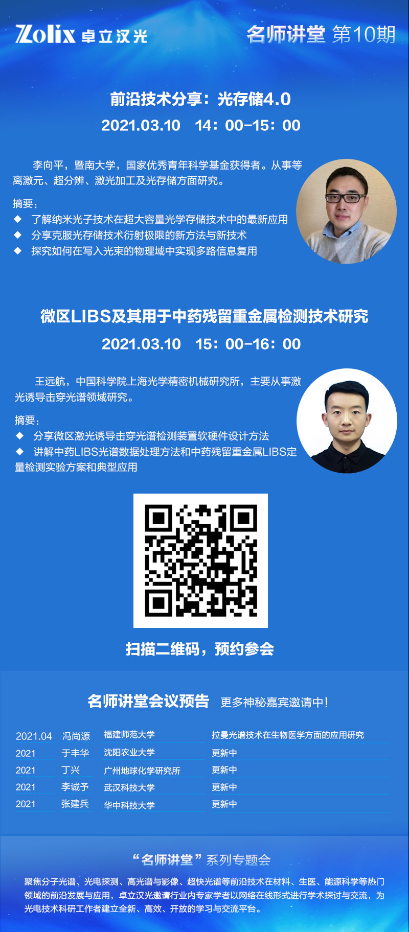 2021年3月10日 14:00-16:00,卓立漢光邀請兩位專家:暨南大學李向平教授及中國科學院上海光學精密機械研究所王遠航老師為大家做分享,您將有如下課程收獲: