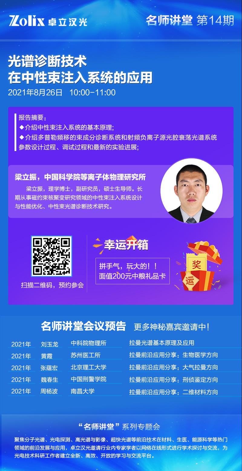 聚焦分子光譜、光電探測(cè)、高光譜與影像、超快光譜等前沿技術(shù)在材料、生醫(yī)、能源科學(xué)等熱門領(lǐng)域的前沿發(fā)展與應(yīng)用,卓立漢光邀請(qǐng)行業(yè)內(nèi)專家學(xué)者以網(wǎng)絡(luò)在線形式進(jìn)行學(xué)術(shù)探討與交流,為光電技術(shù)科研工作者建立全新、高效、開(kāi)放的學(xué)習(xí)與交流平臺(tái)。