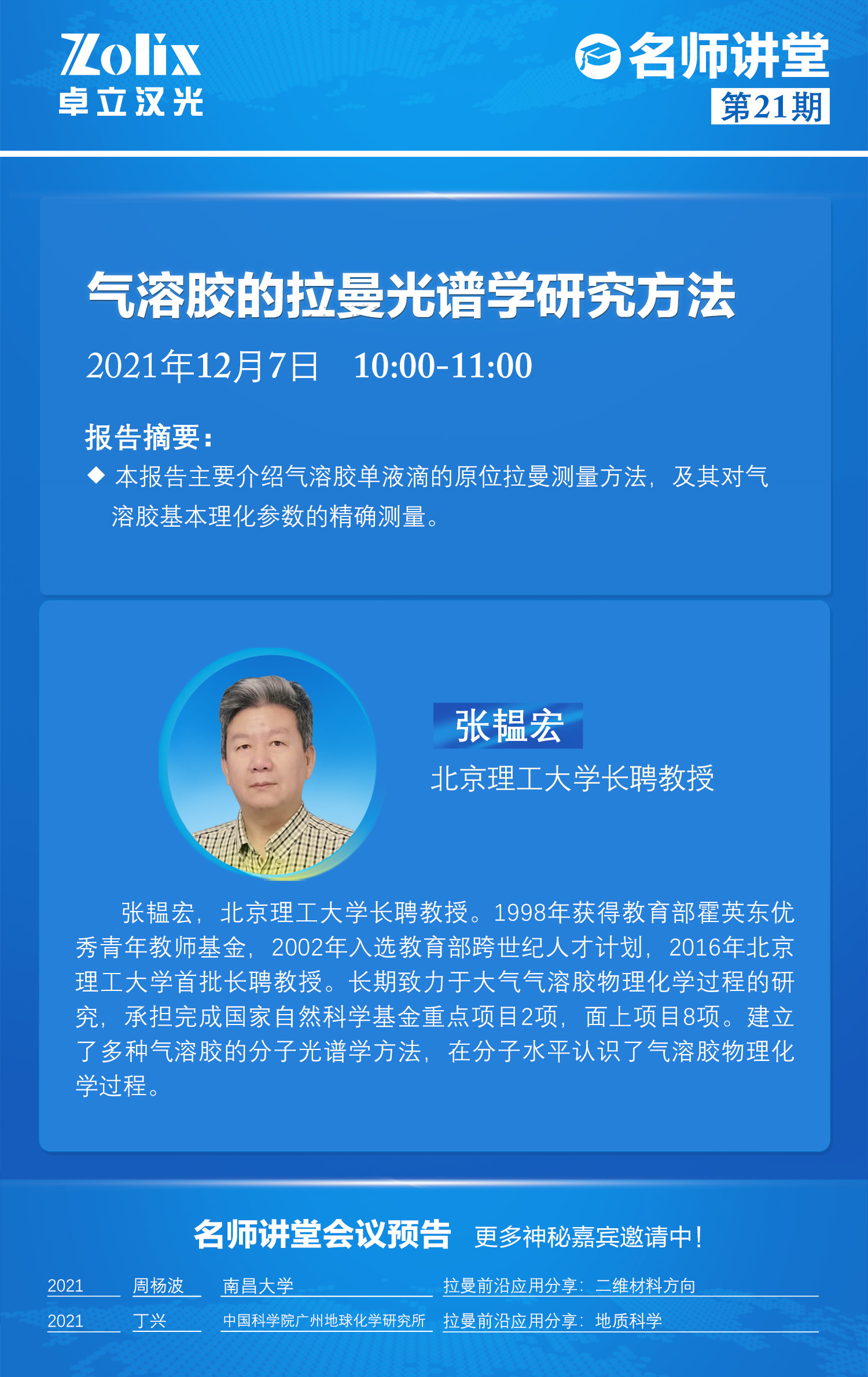 聚焦分子光譜、光電探測(cè)、高光譜與影像、超快光譜等前沿技術(shù)在材料、生醫(yī)、能源科學(xué)等熱門領(lǐng)域的前沿發(fā)展與應(yīng)用,卓立漢光邀請(qǐng)行業(yè)內(nèi)專家學(xué)者以網(wǎng)絡(luò)在線形式進(jìn)行學(xué)術(shù)探討與交流,為光電技術(shù)科研工作者建立全新、高效、開(kāi)放的學(xué)習(xí)與交流平臺(tái)。