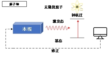 原子鐘的工作原理如圖 9所示,使用本振源(晶振或者超穩(wěn)頻率源)的標(biāo)準(zhǔn)頻率。一路作為輸出,另一路通過頻率綜合器得到特定頻率數(shù)值輸出原子鐘躍遷頻率。將此頻率信號作用于原子系綜,使原子發(fā)生能級躍遷,利用躍遷幾率作為誤差信號反饋至本振源,*終將本振源的頻率鎖定到原子躍遷頻率上。