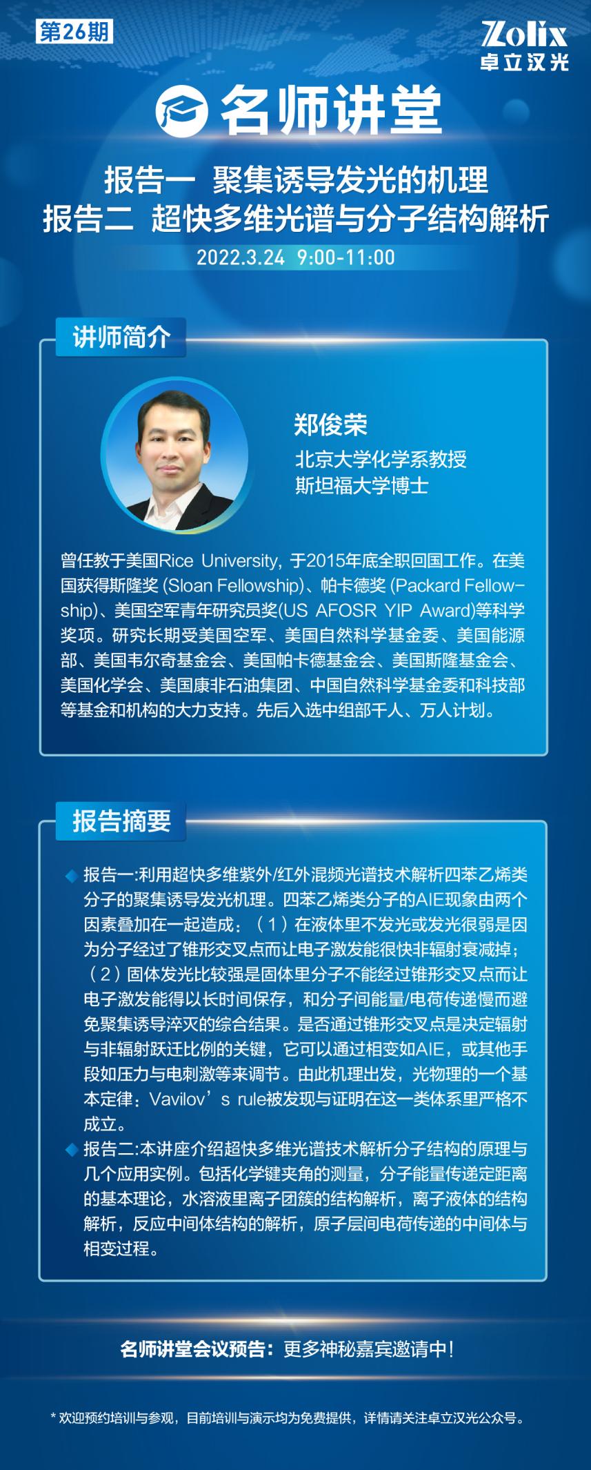 聚焦分子光譜、光電探測、高光譜與影像、超快光譜等前沿技術(shù)在材料、生醫(yī)、能源科學等熱門領(lǐng)域的前沿發(fā)展與應(yīng)用,卓立漢光邀請行業(yè)內(nèi)專家學者以網(wǎng)絡(luò)在線形式進行學術(shù)探討與交流,為光電技術(shù)科研工作者建立全新、高效、開放的學習與交流平臺。