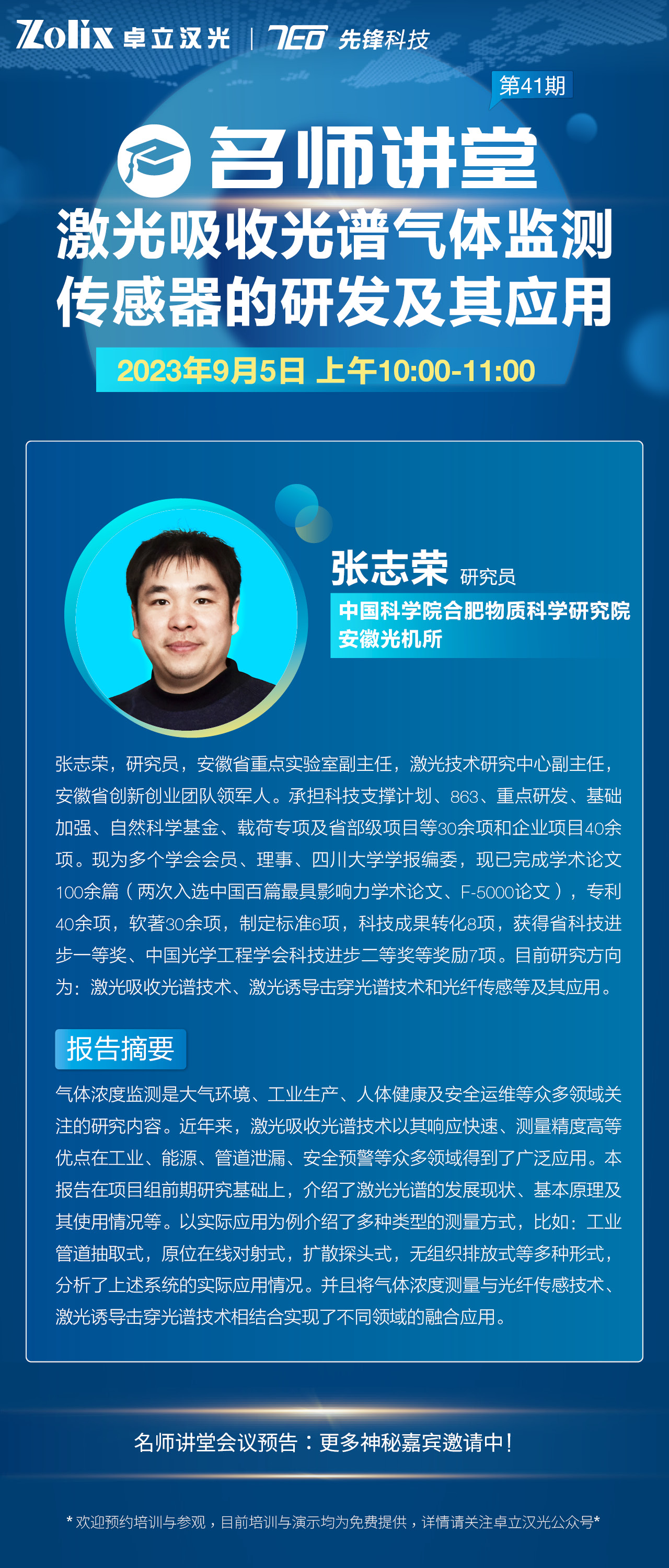 41期名師講堂|安徽光機(jī)所—張志榮研究員帶來激光吸收光譜技術(shù)方向講座,更有多重直播福利,歡迎預(yù)約!