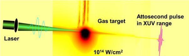 阿秒脈沖產(chǎn)生示意圖(來(lái)自網(wǎng)絡(luò))