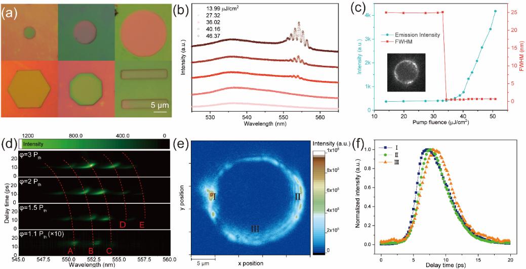 圖4. 鈣鈦礦單晶微腔激射動力學研究