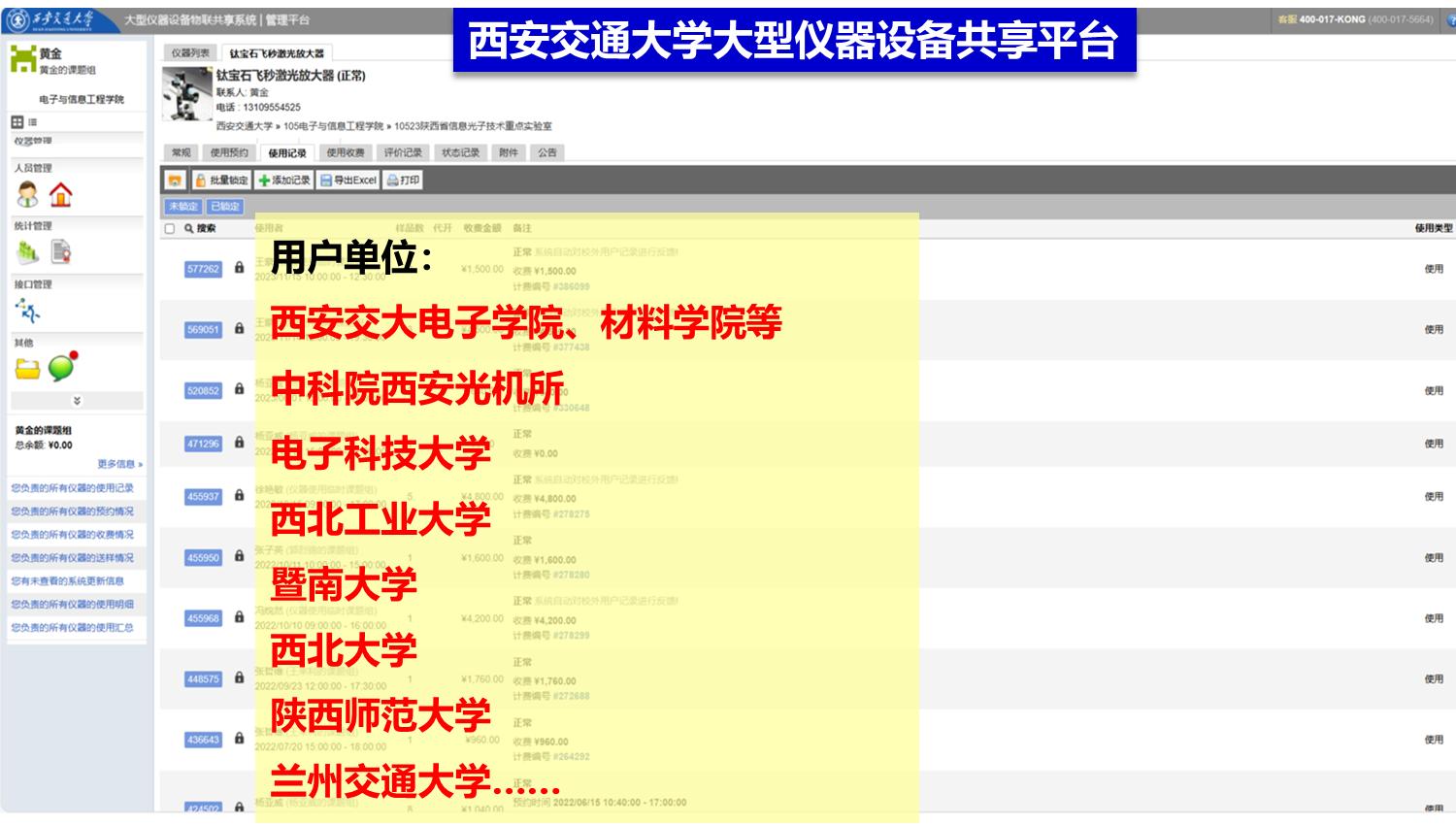 儀器推廣與合作目前該儀器樣機已在納入西安交通大學大型儀器設備物聯(lián)共享系統(tǒng)(http://equip.xjtu.edu.cn/home/),校內外用戶可通過平臺預約測試,目前已為校內和十余家校外單位提供測試服務,合作研究成果相繼在Advanced Materials、Angewandte Chemie等頂級期刊發(fā)表高水平學術論文。