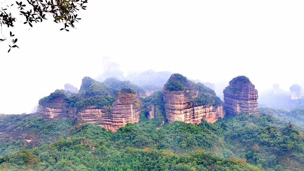 丹霞山精華的部分匯集在這里,從山腳到山頂,一步一景,人文風貌與自然觀景相結合。下著雨,讓原本陡峭的山路更添濕滑,我們手拉手好似拴在一起,一點點往下挪,這就是團隊的力量。