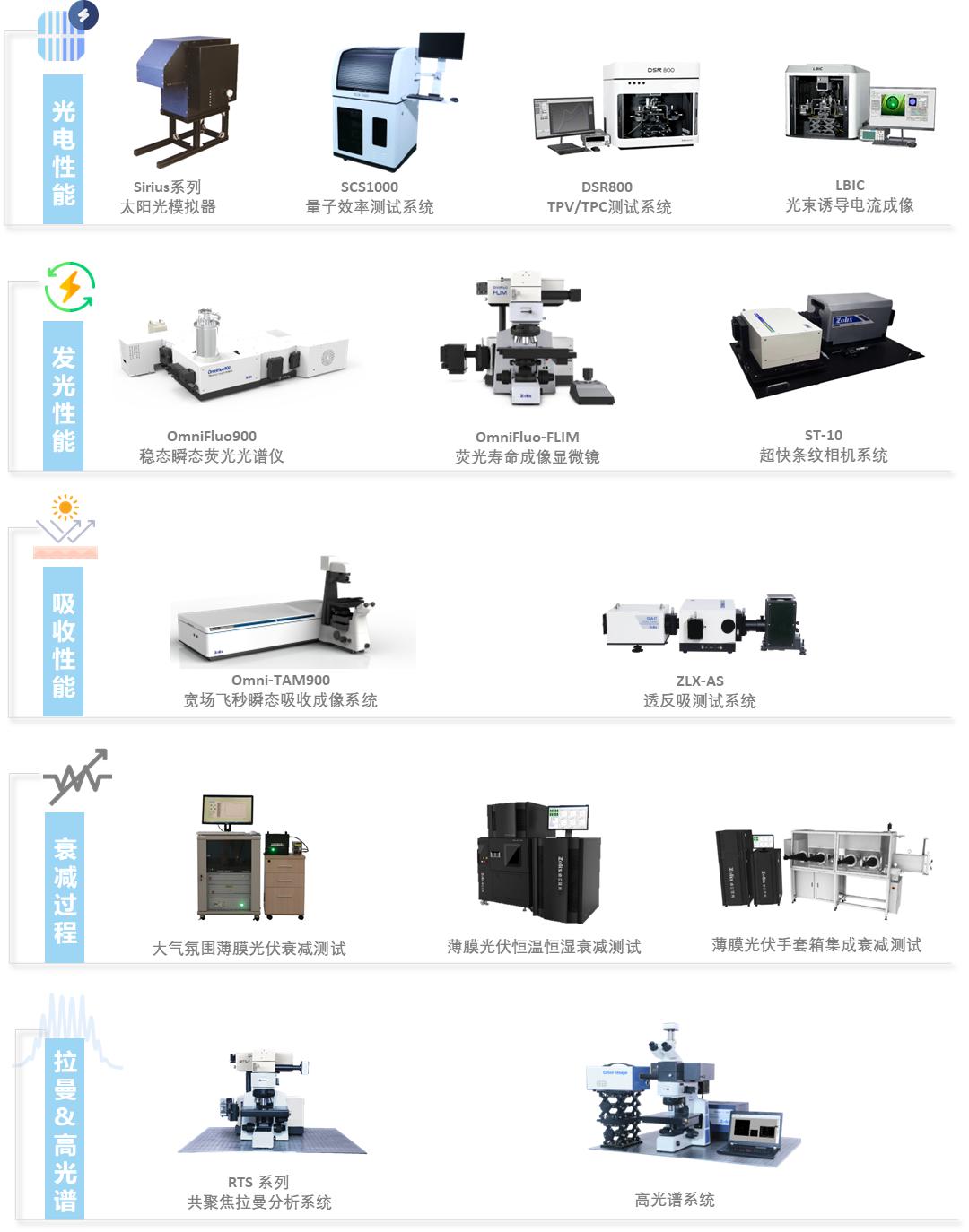 北京卓立漢光儀器有限公司作為國內(nèi)精密光學(xué)儀器和精密機械運動與控制技術(shù)產(chǎn)品的知名供應(yīng)商,近年來持續(xù)發(fā)布多個熒光、拉曼、太陽能電池檢測等光譜測量系統(tǒng)。針對鈣鈦礦太陽能電池的測試,我們也推出了一系列產(chǎn)品及相應(yīng)的解決方案,助推鈣鈦礦產(chǎn)業(yè)化之路。