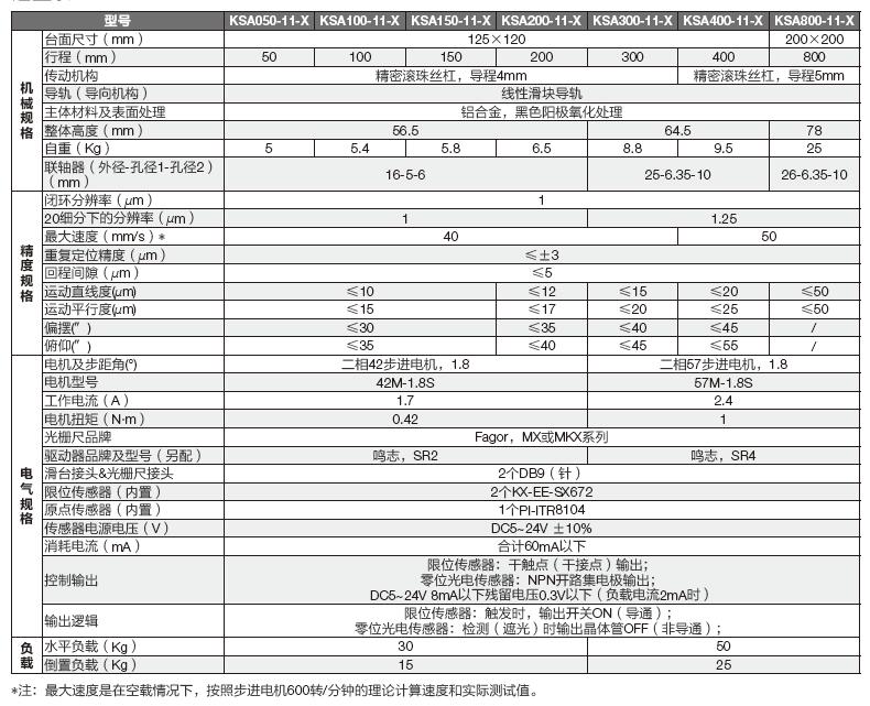 KSA系列高精密電動(dòng)直線滑臺(tái)選型表:
