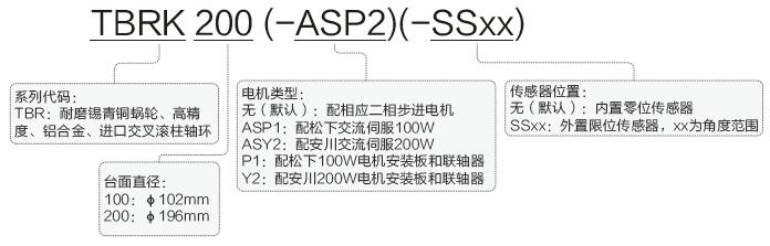 TBRK系列高精度電動(dòng)旋轉(zhuǎn)滑臺(tái)命名規(guī)則: