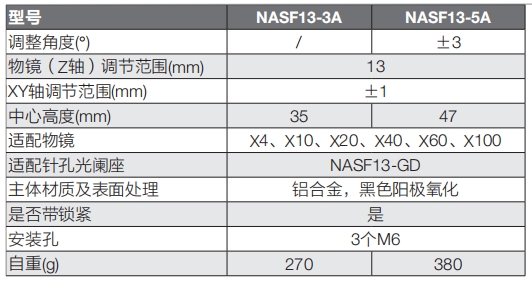 注:1. 每臺空間濾波器標配一個針孔光闌座;