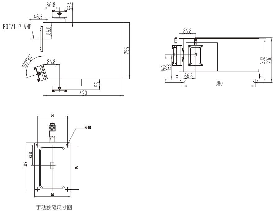 縫寬0.01-3mm連續(xù)手動(dòng)可調(diào),可選配自動(dòng)狹縫??p高:2、4、14mm可選 |
