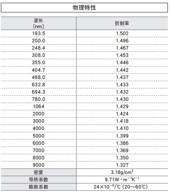 CaF2與其他的晶體相比,濕度的耐久性較高,可以和一般的光學(xué)元件一樣進行操作。