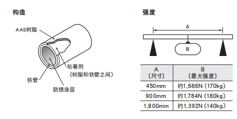 結(jié)構(gòu)與強度如圖所示。利用塑料錘,連接T形·L形的接合管即可組裝。