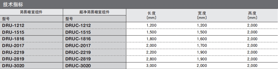 ?簡易暗室組件由暗幕,管材,塑料錘組成。一般的組裝時間:(例)組裝DRU-1816約需要30分鐘(兩人)。