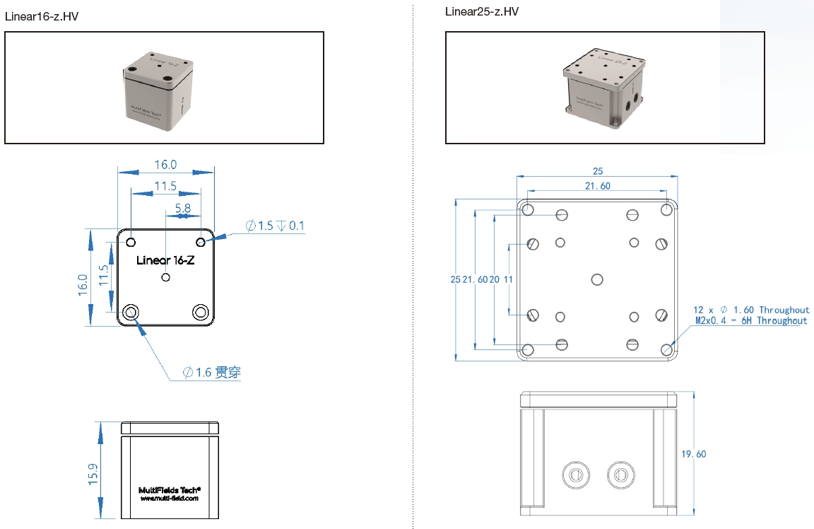 Linearxx-Z極低溫線性壓電升降臺尺寸圖: