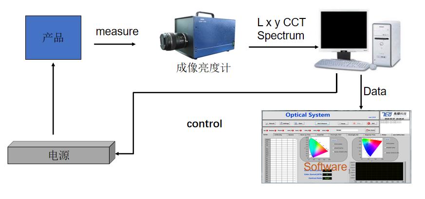 亮度、色坐標(biāo)、色溫、照度均勻性、色度均勻性等,自動(dòng)配光、缺陷檢測(cè)