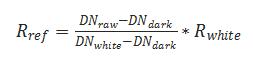 where Rref is the reflectance value of the black-and-white corrected image, DNraw is the DN value of the original image, DNwhite is the white frame data of the reference plate, DNdark is the systematic error DN value of the camera, and Rwhite is the reflectance coefficient of the reference plate.