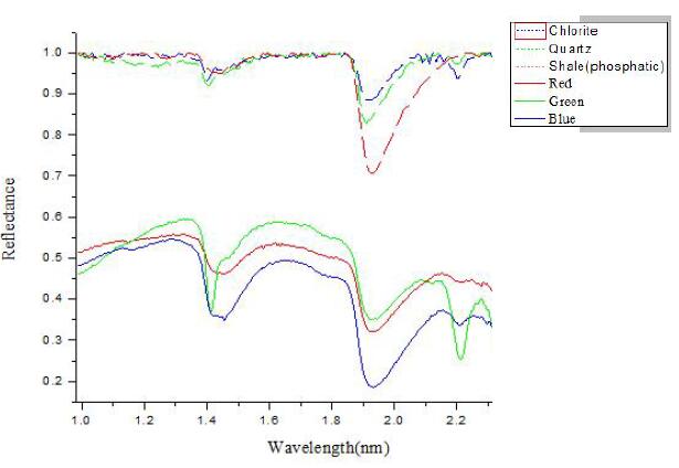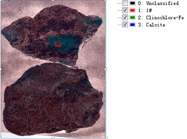 Using a hyperspectral imager to obtain the hyperspectral data of the sample, and combining the spectral analysis method to perform spectral analysis and matching of the sample mineral rock. The composition of the sample can be identified and judged. Because the mineral rock sample itself is not pure, the composition of different samples the composition is not the same, and the characteristic information of minerals in different bands is also different. In the above data analysis, the composition of the rock can be preliminaries judged, including the results obtained by the analysis.