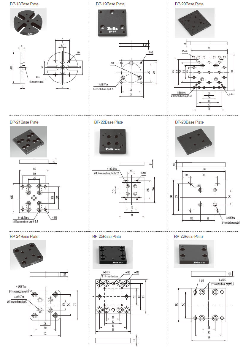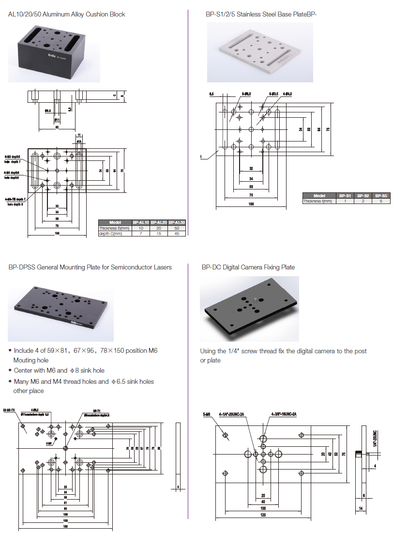 BP series base plate increases the flexibility of any optical setup by providing series of mounting holes and slots. Make it more easy to connect any optics on an optical table or breadboard.