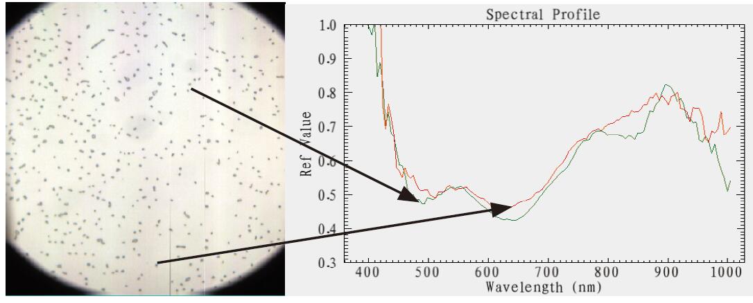 Fig: Vis-Nri Microscopic hyperspectral imaging and spectral of bacillus cell