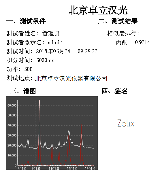 基于手持式拉曼光譜儀具有現(xiàn)場(chǎng)快速識(shí)別的優(yōu)勢(shì),本次選擇了易制毒-丙酮作為測(cè)試物,量取2ml丙酮試劑與透明玻璃瓶中,并置于液體樣品池內(nèi)檢測(cè),檢測(cè)結(jié)果如圖2所示: