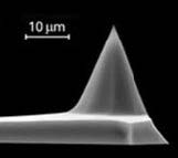 AFM 由一個對微弱力極敏感的彈性微懸臂(通常是氮化硼),在其尖端有一個用來在樣品表面上掃描的很尖細的探針(針尖的下端通常只有幾個納米的尺寸),通過探測針尖與樣品之間的相互作用力來獲得表面拓撲圖,以及其在物理參數(shù)(例如硬度、電荷密度)方面的評價。