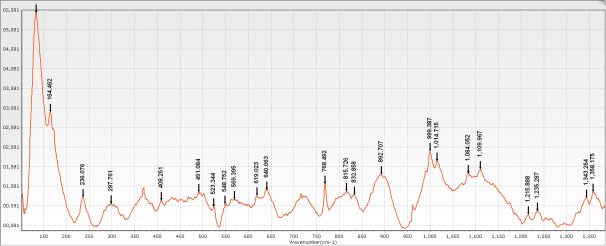 107cm-1、192cm-1、289cm-1、360cm-1、430cm-1、465cm-1 674cm-1、1049cm-1、1097cm-1 |