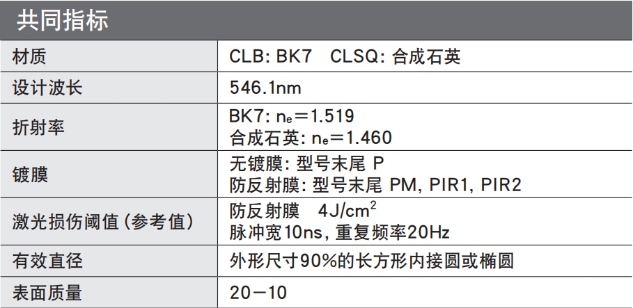 ?有從可見光到近紅外用的BK7材料的透鏡,和可用于350nm以下紫外光的高激光損傷閾值的合成石英透鏡這兩種類型。
