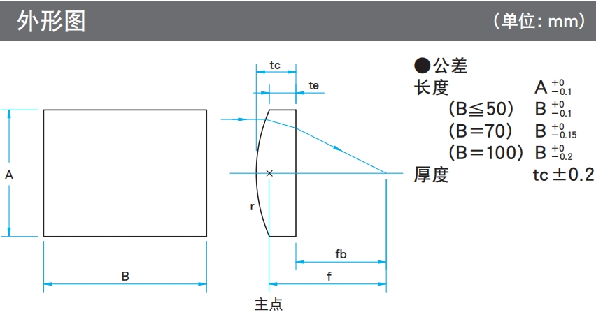 ?柱面平凸透鏡有色差,焦距隨波長變化。各波長的焦距請參考網(wǎng)頁上的“焦距隨波長變化特性數(shù)據(jù)”確認。