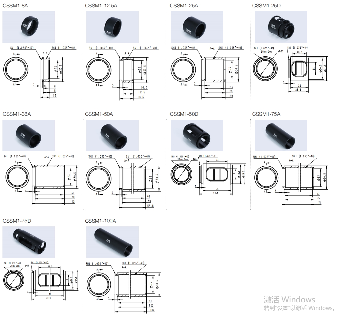 設(shè)計,適合快速搭建緊湊型光學(xué)系統(tǒng)。每個透鏡套筒都附帶一個 SM1R 卡環(huán)用于固定光學(xué)元件。CSSM1-XXD 帶外開槽,不需要擰出卡環(huán)