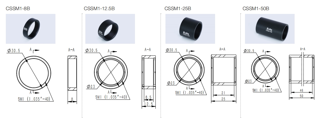 Zolix 內(nèi)外螺紋透鏡套筒一端是 SM1 外螺紋,另一端是 SM1 內(nèi)螺紋,主要是用來固定直徑 Ø25.4 mm 的光學(xué)元件。采用了可拓展的