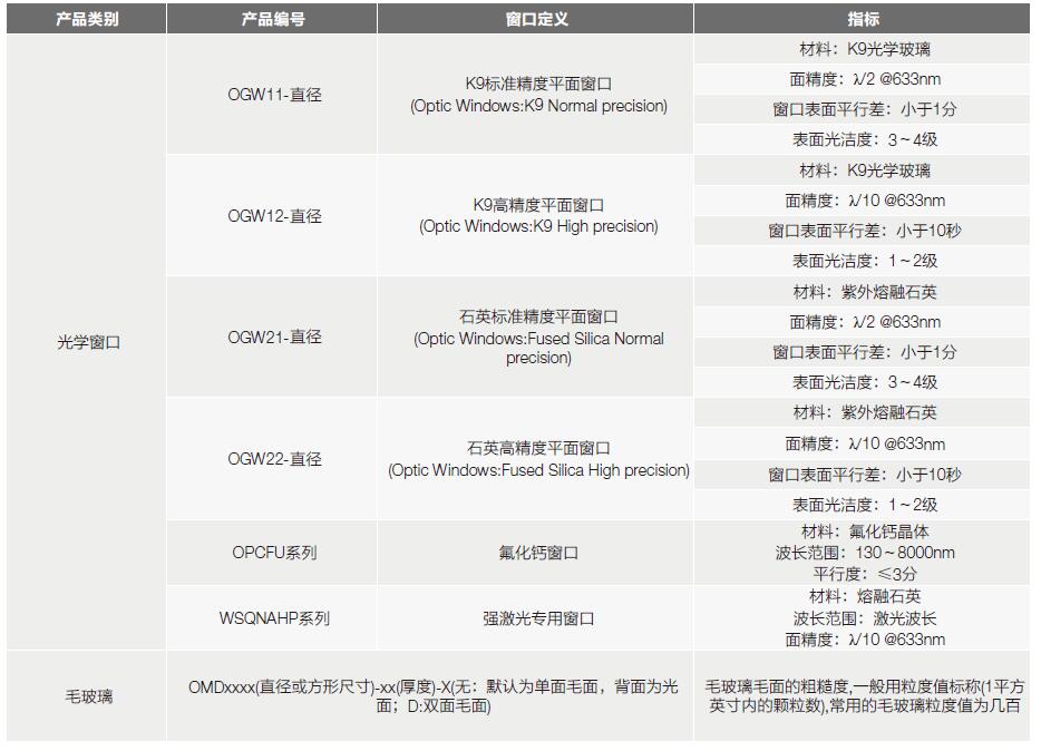 OGW11系列,K9玻璃,標準精度,平面窗口