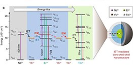 近日,華南理工大學(xué)發(fā)光材料與器件國(guó)家重點(diǎn)實(shí)驗(yàn)室周博教授團(tuán)隊(duì)提出了一種研究微觀尺度能量遷移過程的新策略。通過構(gòu)建界面能量傳遞IET(Interfacial Energy Transfer)調(diào)控的核殼納米結(jié)構(gòu)和能量輸運(yùn)過程設(shè)計(jì),成功觀測(cè)到敏化劑/激活劑共摻上轉(zhuǎn)換體系的能量遷移特性,并通過定義特征參量(γEM)描述了能量遷移和能量傳遞的競(jìng)爭(zhēng)。